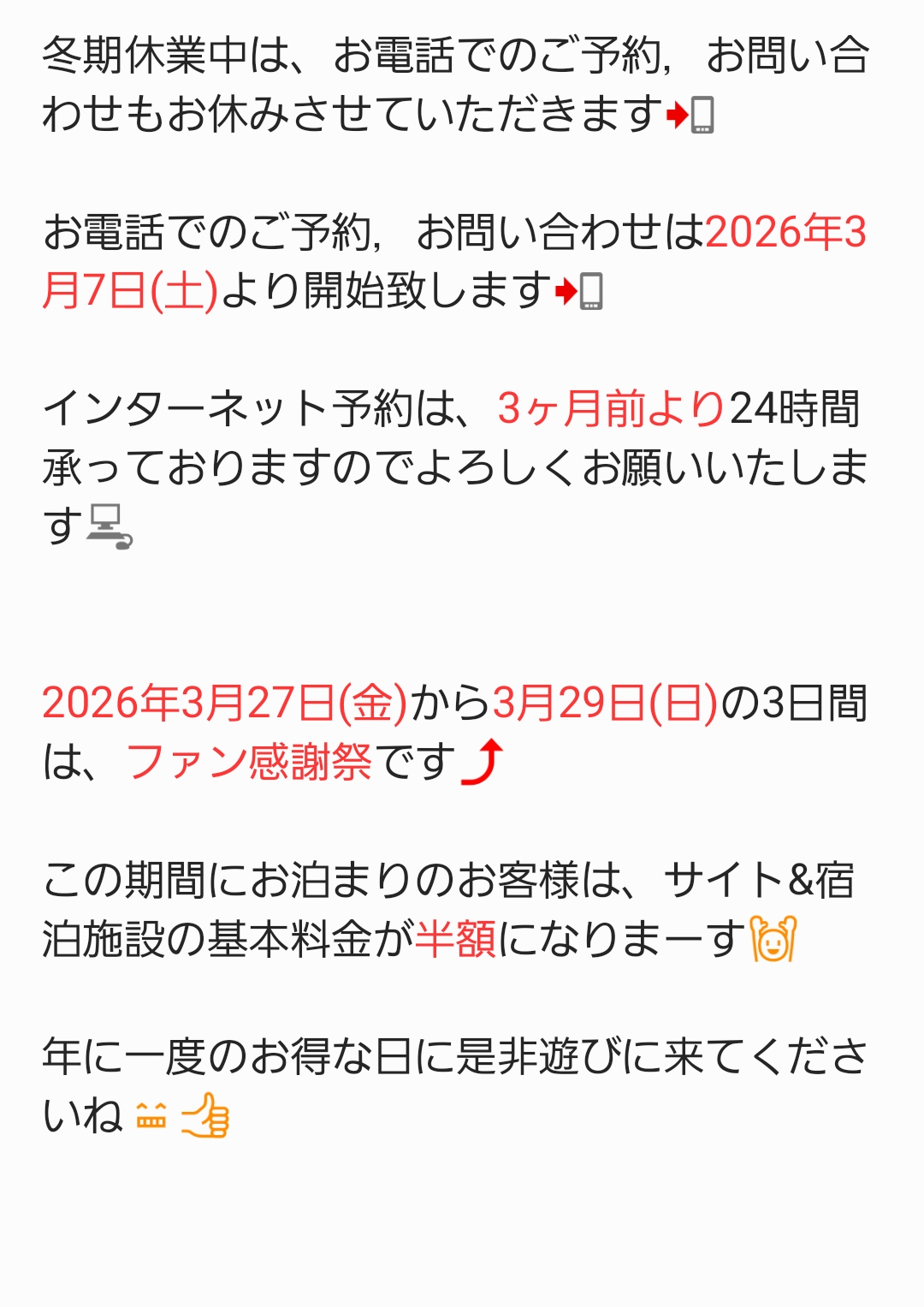 【キャンプネットでご予約のお客様へ】![]()